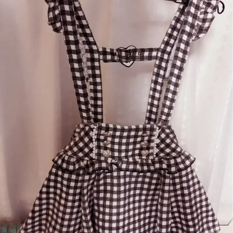 LIZLISA 깅엄 체크 서스펜더 치마바지 블랙