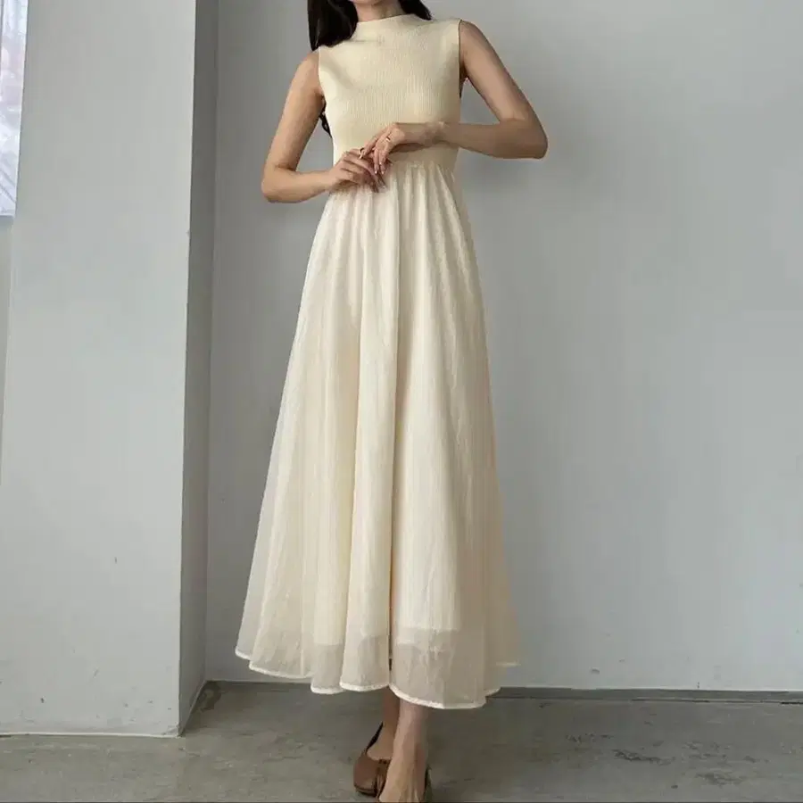louere 보틀넥 니트 도킹 원피스 블랙 아이보리