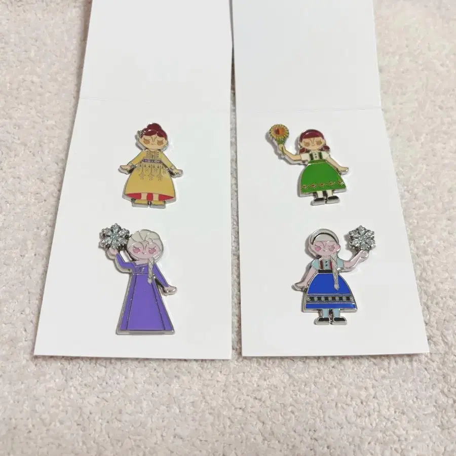 안나와 엘사 핀 배지 4개 세트입니다. 컬렉션 정리를 위해 판매합니다. 에어캡+opp 봉투로 포장합니다.