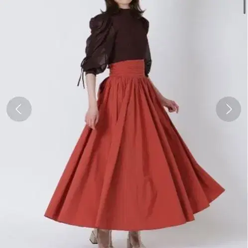 AND COUTURE 리본 허리 플레어 스커트 오렌지