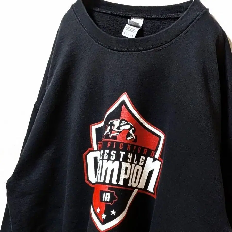 길단 레슬링 챔피온 로고 맨투맨 트레이닝복 블랙 L 구제 의류