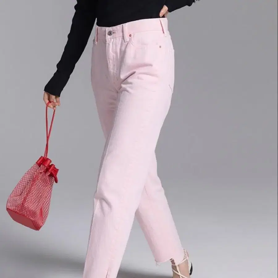 미라 오웬 핑크 데님 밑단 단차 테이퍼드 데님 1 사이즈 M 사이즈 상당
