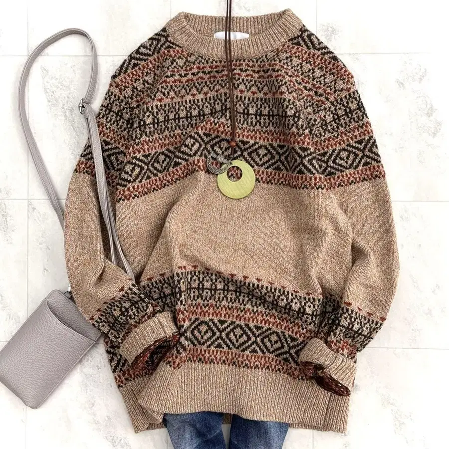 새상품급 매킨토시 철학 실크 혼방 페어아일 패턴 니트 스웨터