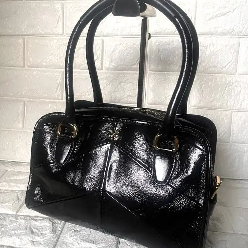 자동 번역되었어요. 원문보기광택이 나는 블랙 PVC 핸드백, 입체적인 디자인이 특징입니다.