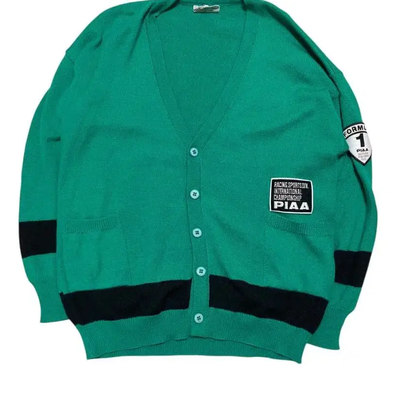 새상품급 RACING PIAA 그린 V넥 가디건 유럽 구제 의류