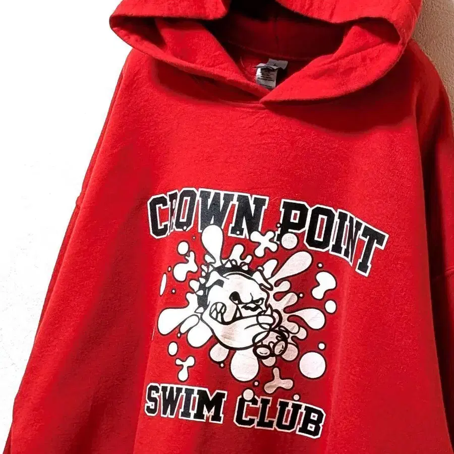 길단 크라운포인트 스윔클럽 후드 맨투맨 레드 빨간색 L 구제 의류