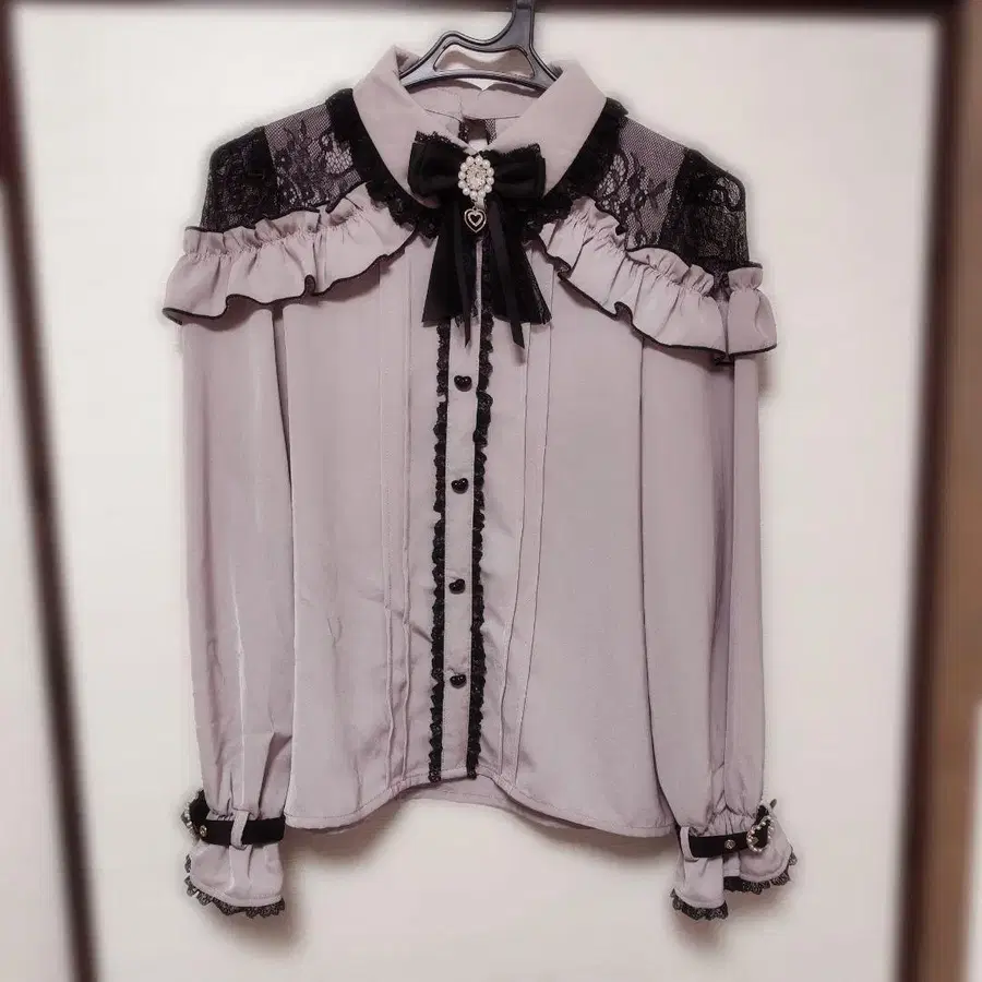 ROJITA 어깨 레이스 프릴 절개 블라우스 핑크