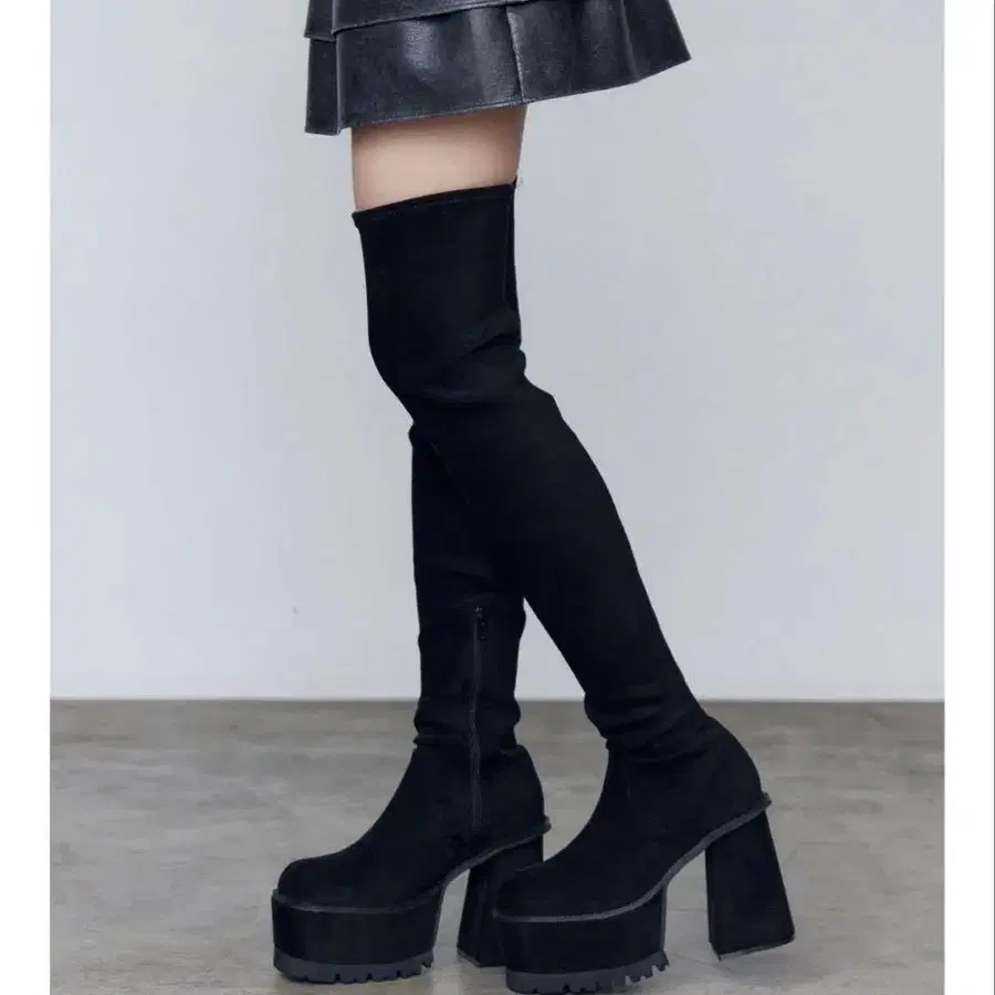 무릎 위까지 확실하게 감싸는 싸이하이 부츠는 어떤 스타일링에도 롱 레그 효과가 뛰어납니다.