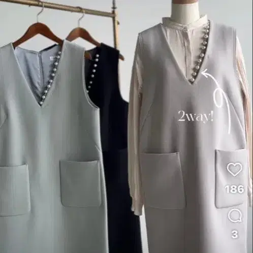 V넥 더블 저지 오버롤 스커트