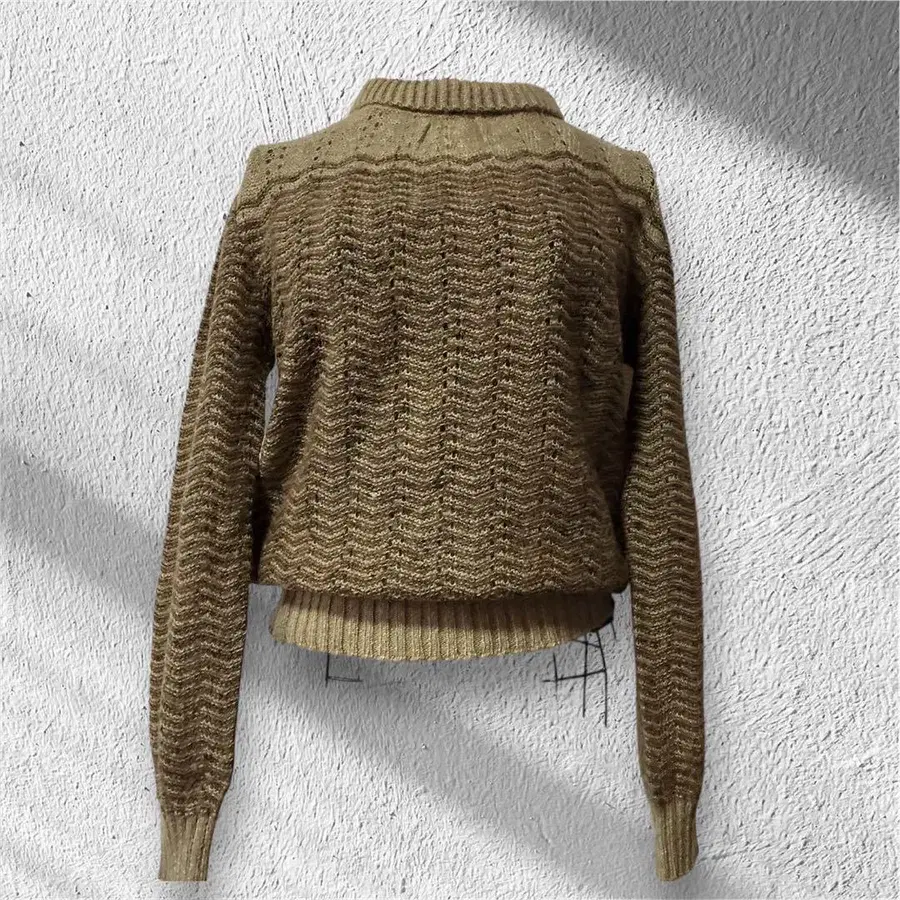 CORDIER 니트 스웨터 M 브라운 울 혼방 스탠딩 칼라 어른 내추럴