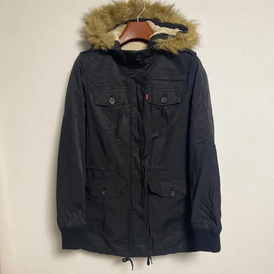 리바이스 블랙 모즈 코트 퍼 포함 M