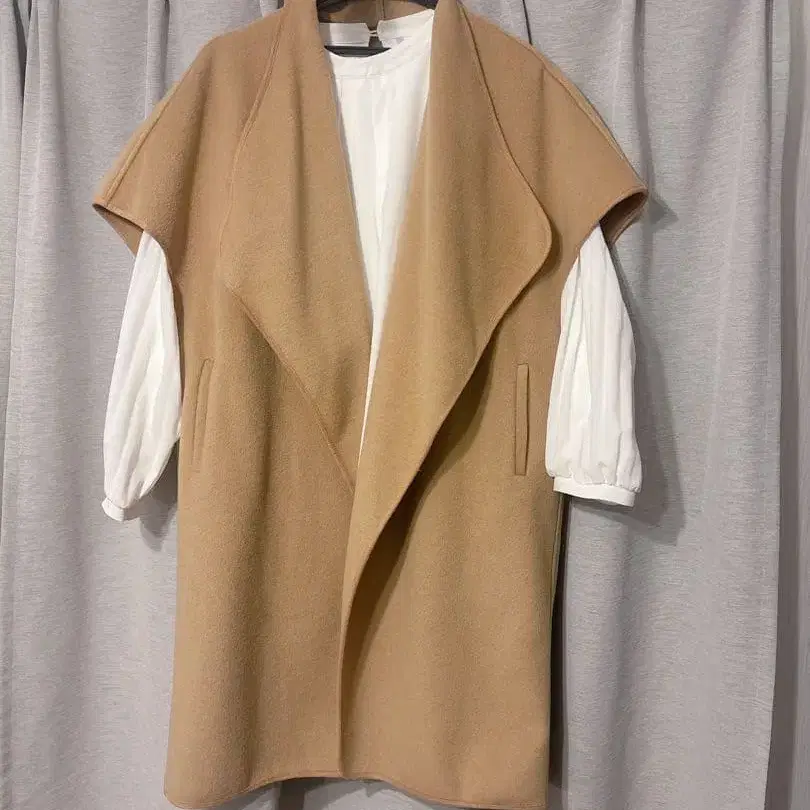 베이지 노카라 베스트 사이드 포켓 포함
