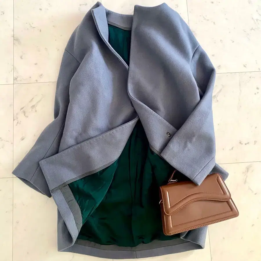 새상품급 드로어 오버 사이즈 코쿤 노카라 코트 울 실크