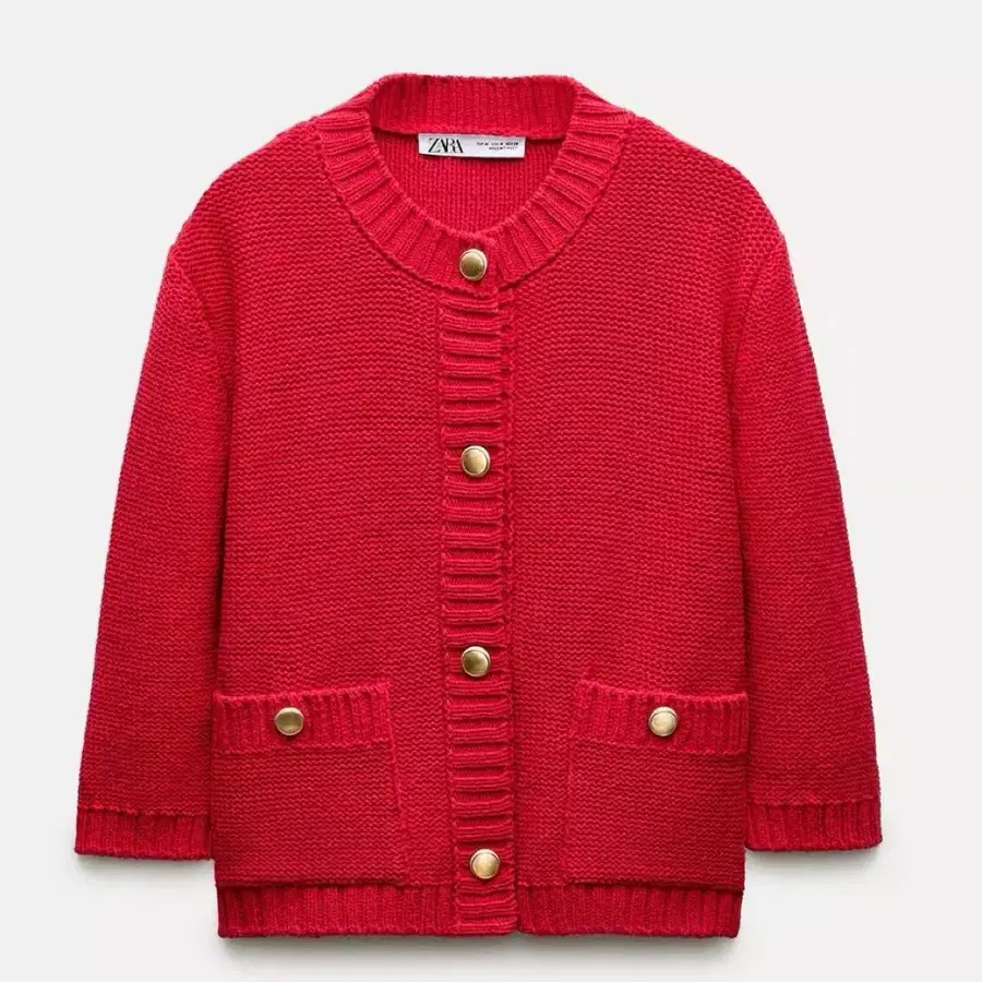 ZARA 레드 가디건 M 골드 버튼 크롭 칠부 소매