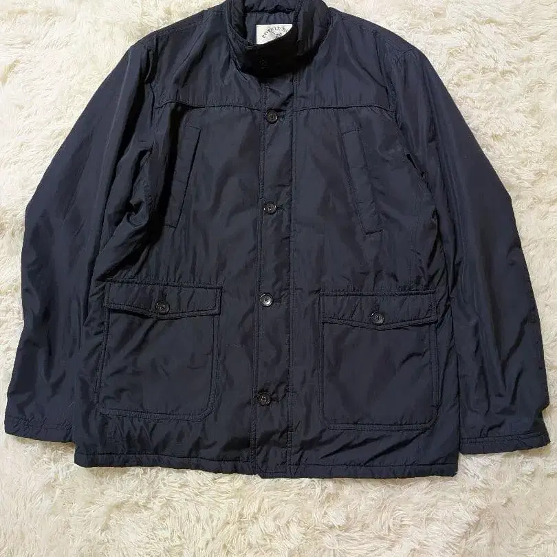 네이비 색상의 BEVERLY HILLS POLO CLUB 제작 자켓, 체크 무늬 플란넬 안감으로 쾌적한 착용감을 제공합니다.