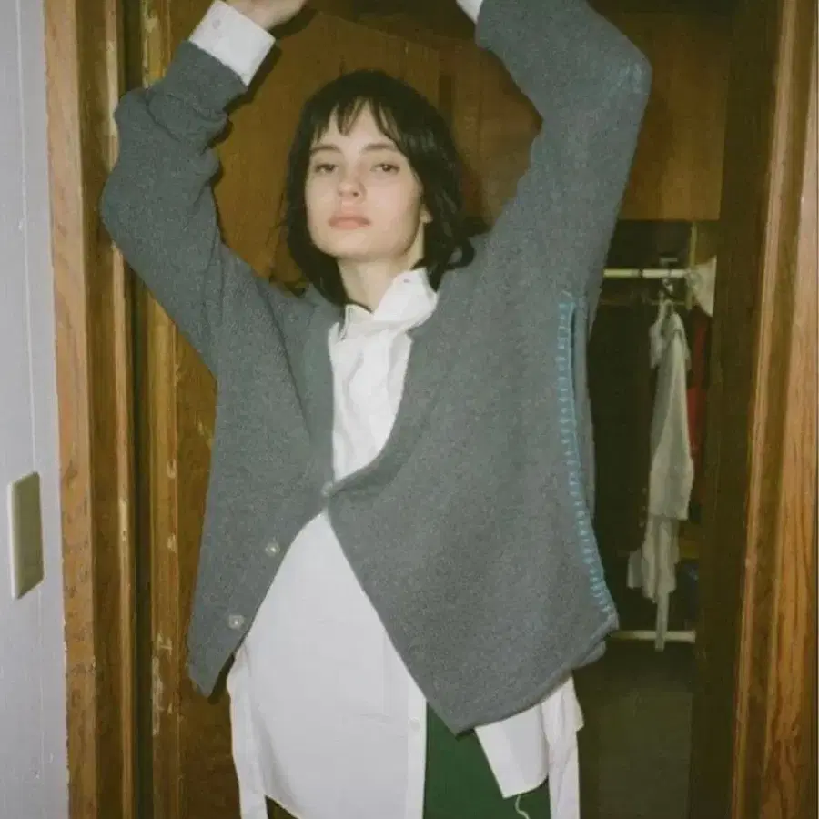 스도크 soduk 슬릿 니트 가디건 비대칭 그레이