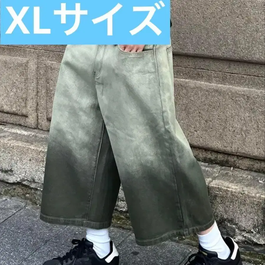 미사용 새상품 올리브 그린 와이드 레그 데님 하프 팬츠