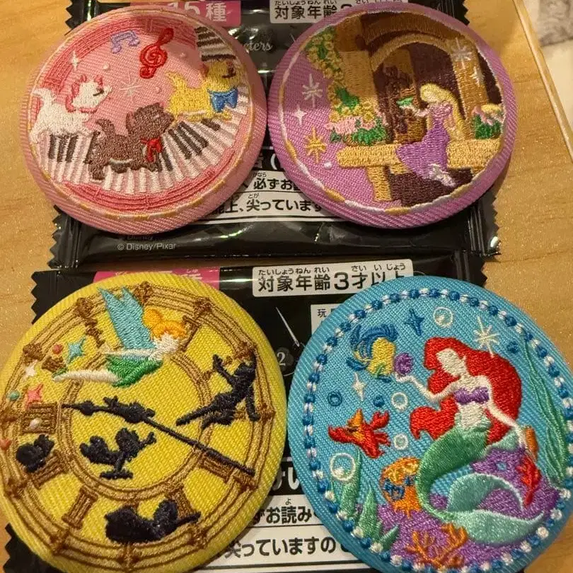 디즈니 자수 캔뱃지 4개 라푼젤, 아리엘, 피터팬, 마리