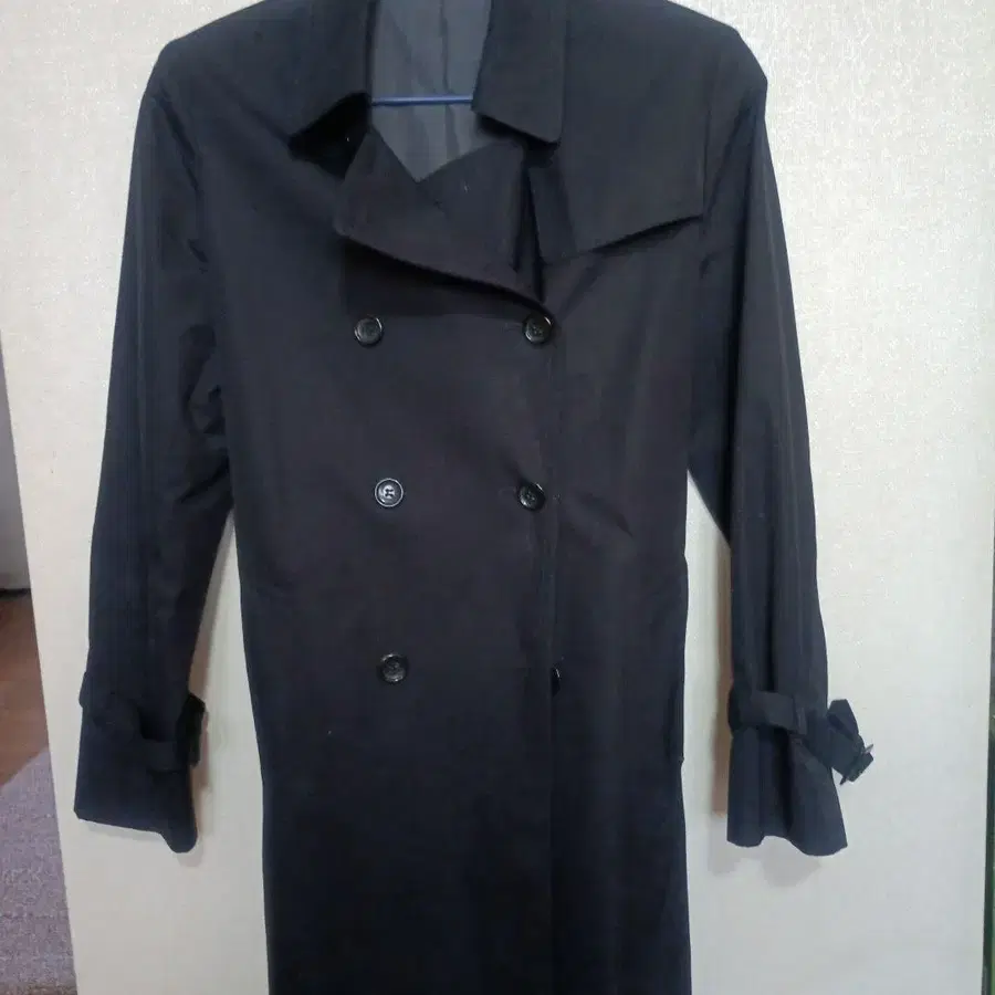 컴시즘 블랙 더블 브레스트 트렌치코트