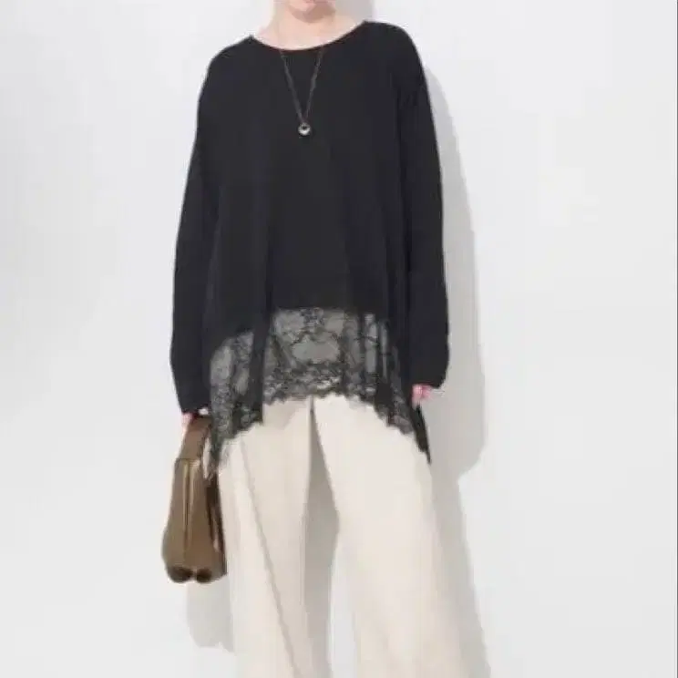 슬로브 이에나 레이스 콤비 티셔츠 블랙