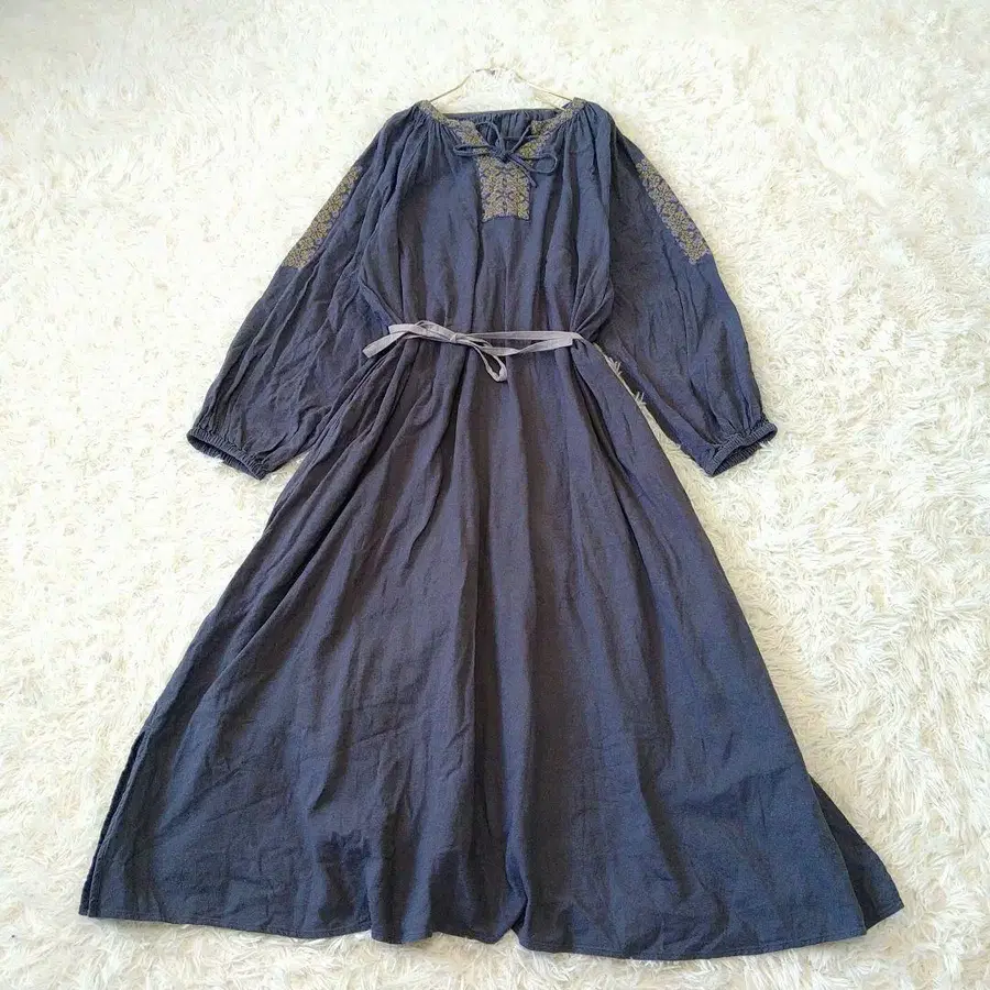 • 새상품 sm2 긴팔 자수 셔츠 원피스 면린넨 그레이 다크 퍼플 계열 롱