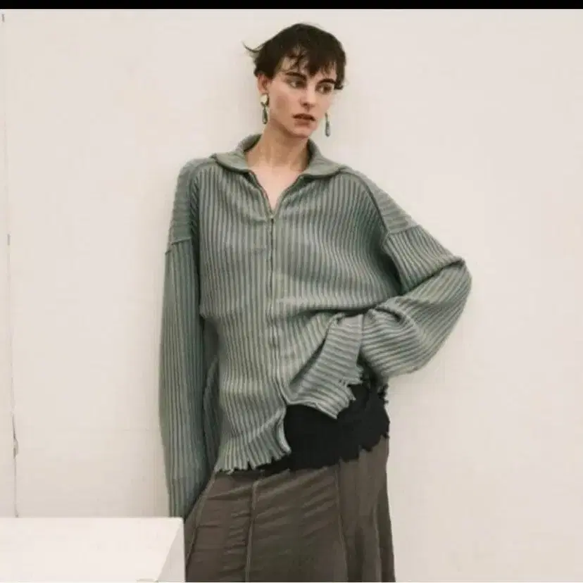 CURRENTAGE 카렌테이지 지퍼 니트 다크 그레이