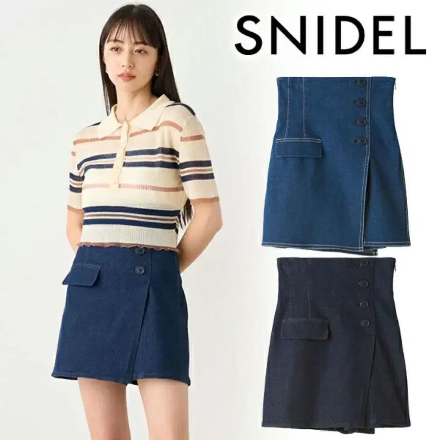 SNIDEL 스나이델 사이드 버튼 데님 스커트 미니 스커트 사이즈 0