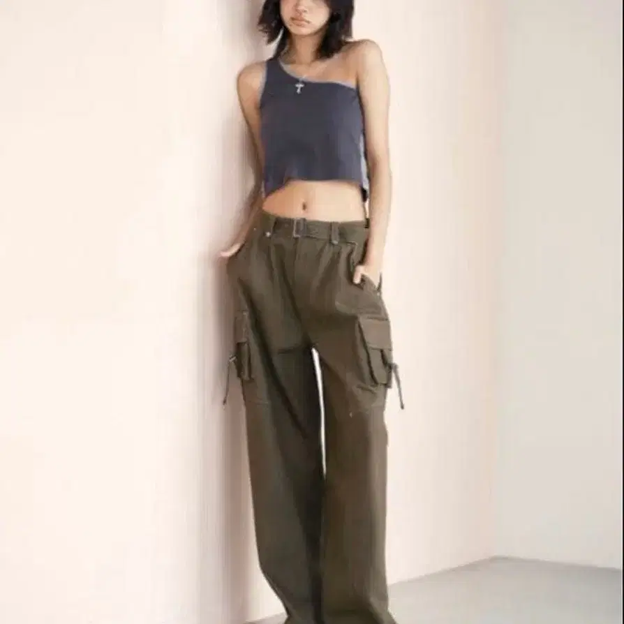 ACLENT 스티치 디자인 카고 팬츠 카키