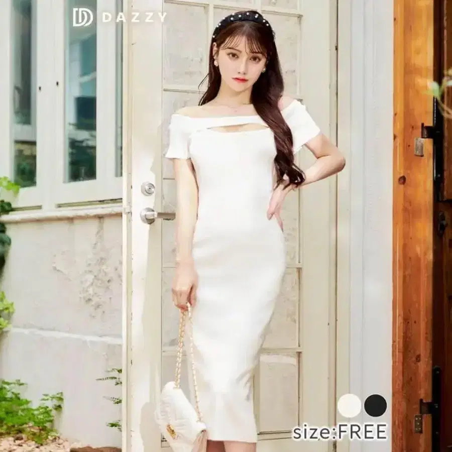DAZZY 오프숄더 컷 아웃 반팔 니트 원피스 FREE