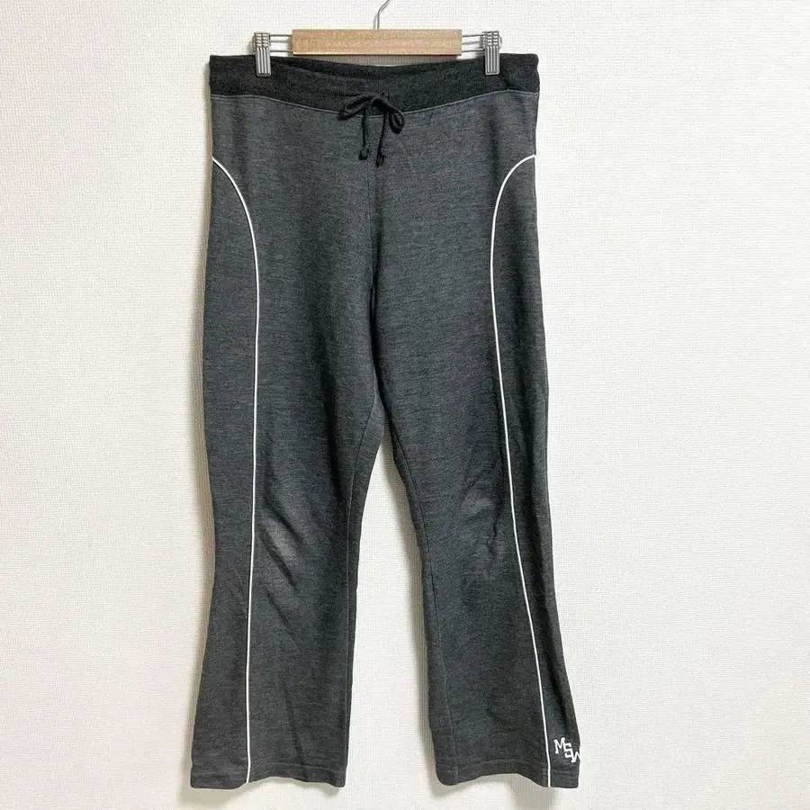 맨투맨 원단으로 허리가 밴딩이며, 끈으로 조일 수 있습니다.