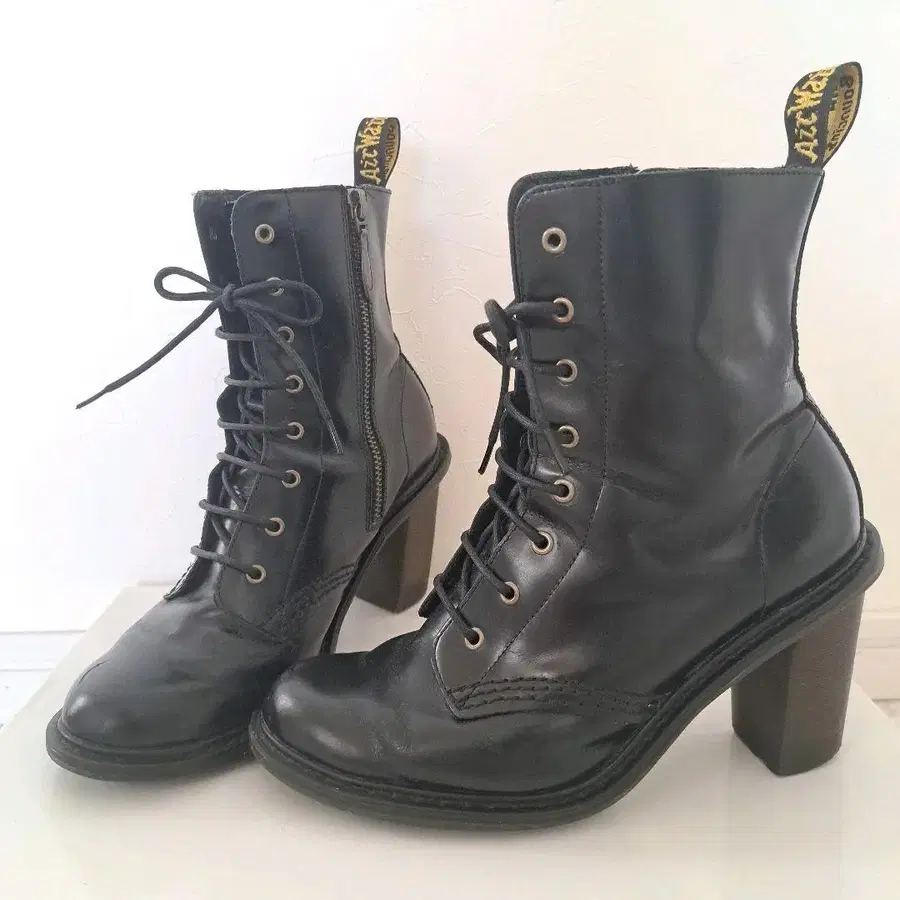 닥터마틴 가죽 블랙 레이스업 부츠 하이힐 23.5cm