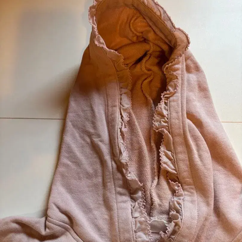 핑크하우스 프릴 달린 옅은 핑크 후드티