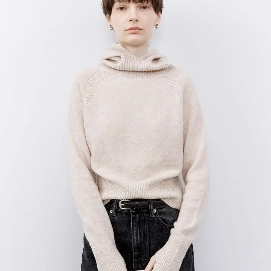 tageechita 울 100% 드레이프 넥 후디 니트탑