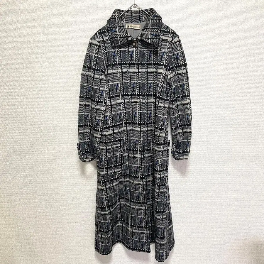Lui Chantant 그레이 계열 체크 무늬 롱 코트