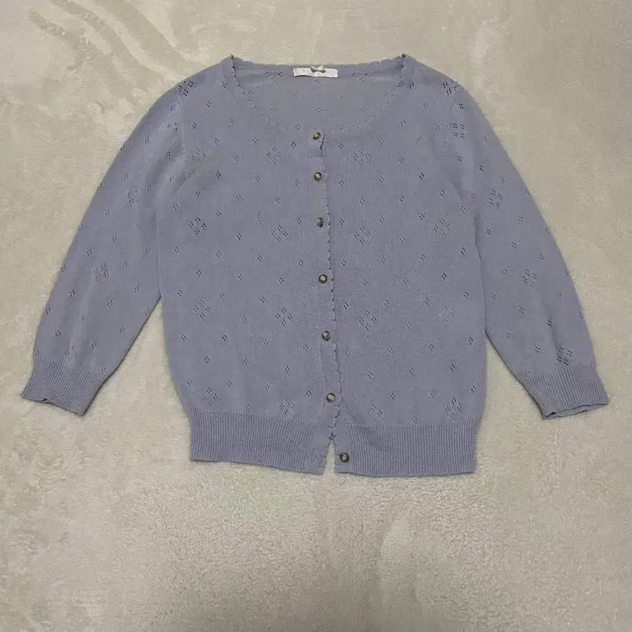 패턴 가디건 시스루 니트 연보라 비쥬 버튼 7부 소매