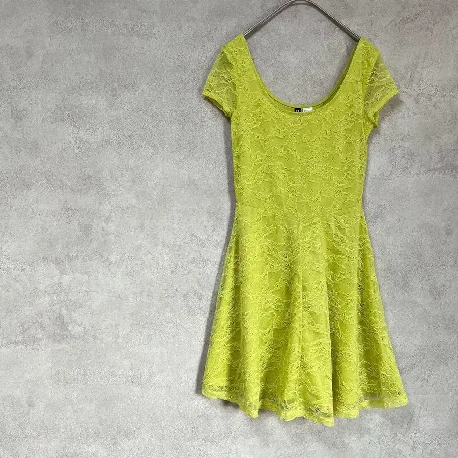 디바이데드 미니 기장 원피스 프렌치 슬리브 옐로우 그린 레이스 꽃무늬 S