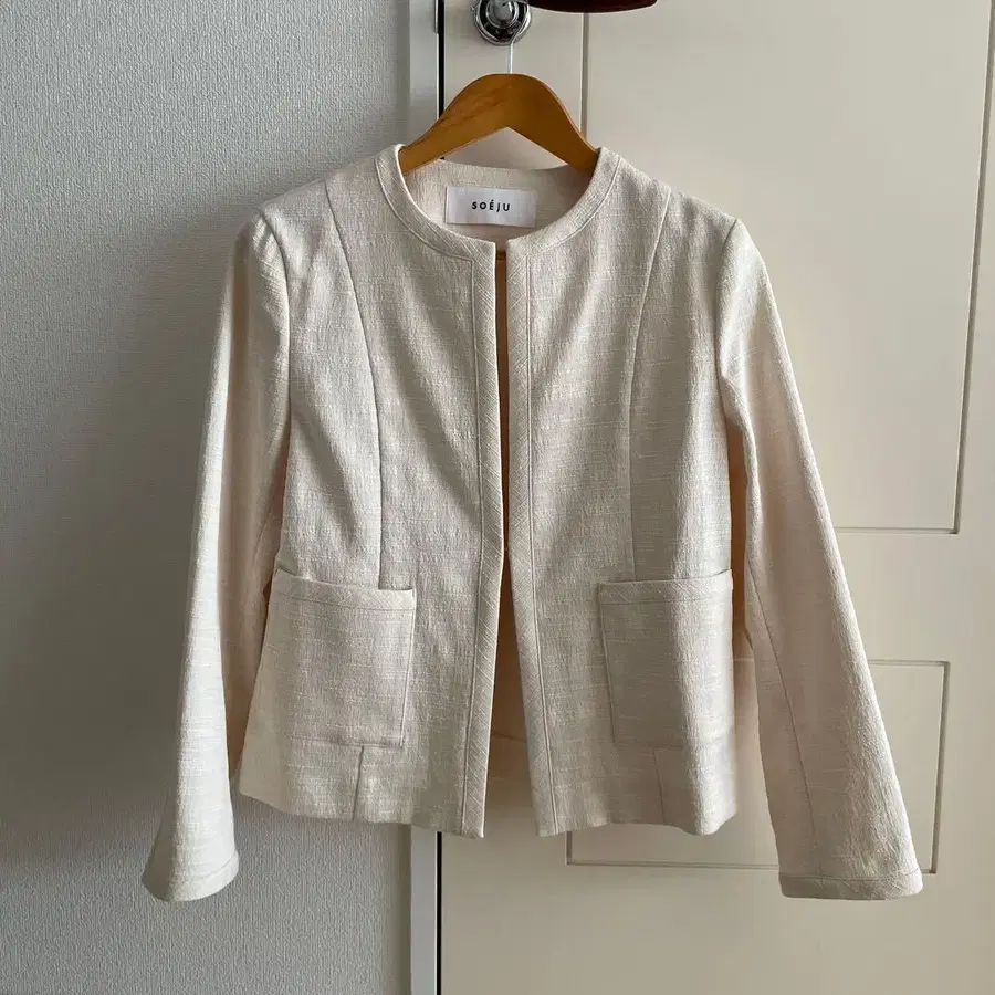 SOEJU 소주 트위드 자카드 노카라 자켓 아이보리 M