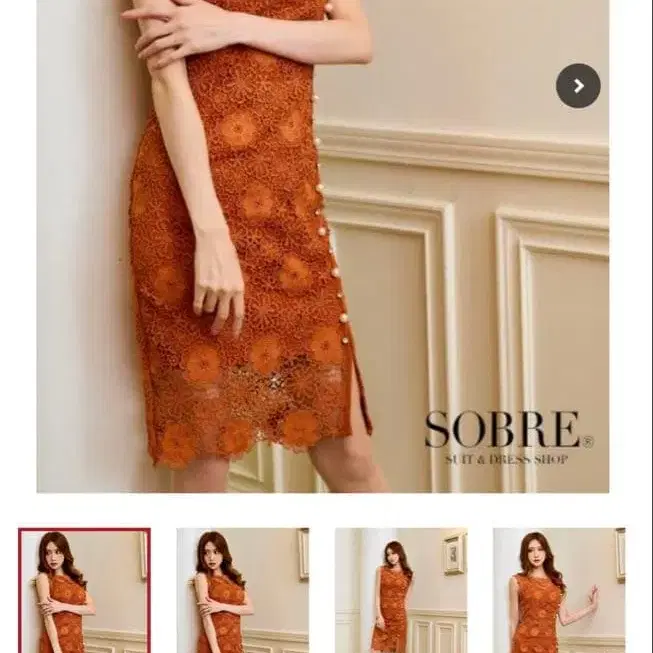 레이스 슬리브리스 드레스 S 사이즈 오렌지