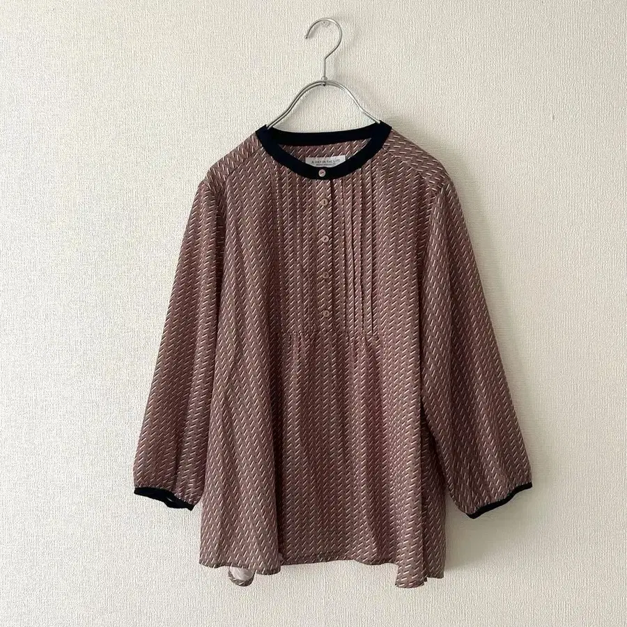 [ 유나이티드 애로우즈 ] 8부 핀턱 블라우스 브라운 네이비