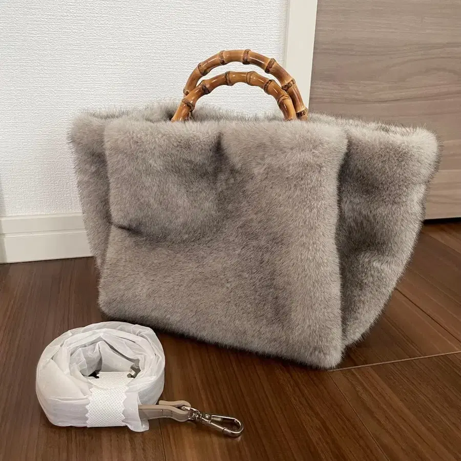 그린 레이블 릴랙싱 페이크 퍼 토트백