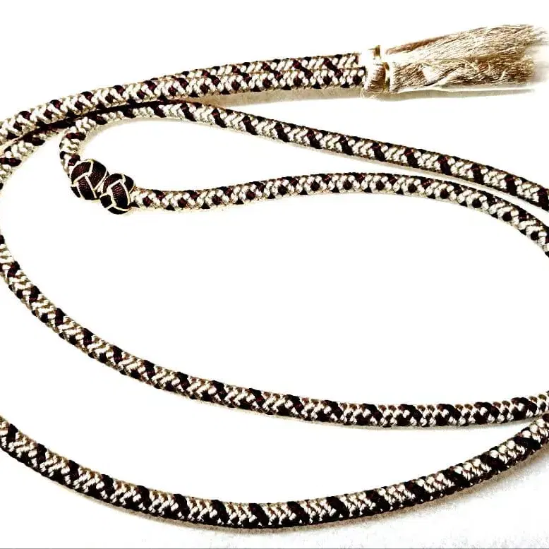 새상품 미사용 브라운과 화이트의 뜨개질 허리띠 앞 장식 구슬 있음