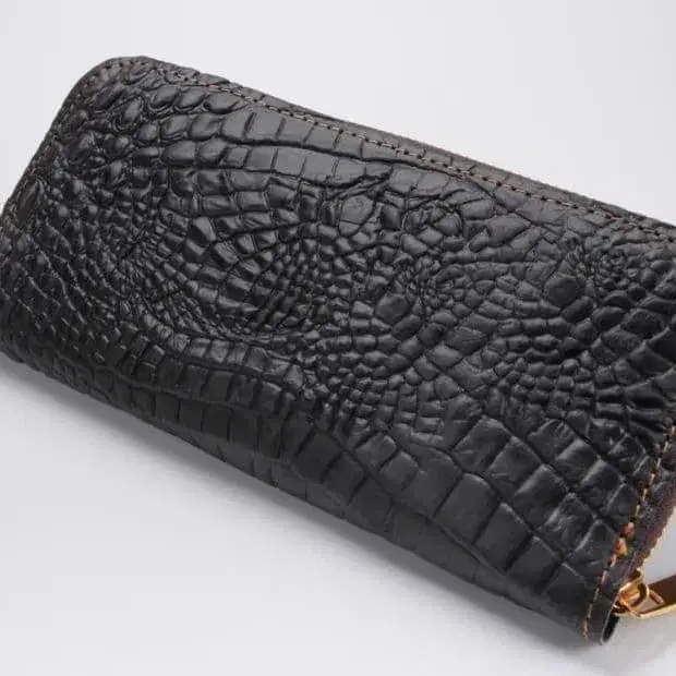 크로커다일 패턴 천연 가죽 대용량 라운드 지퍼 블랙 지갑 선물