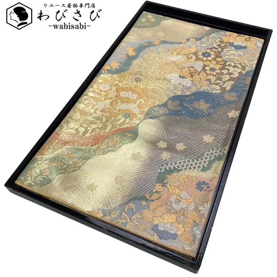 후쿠로 오비 반짝이는 꽃과 덩굴에 새 무늬 미치나가토리 금실 O-3183