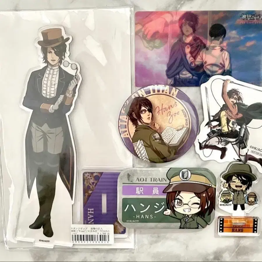 진격의 거인 한지 아크릴 스탠드 캔뱃지 스티커 6점 세트