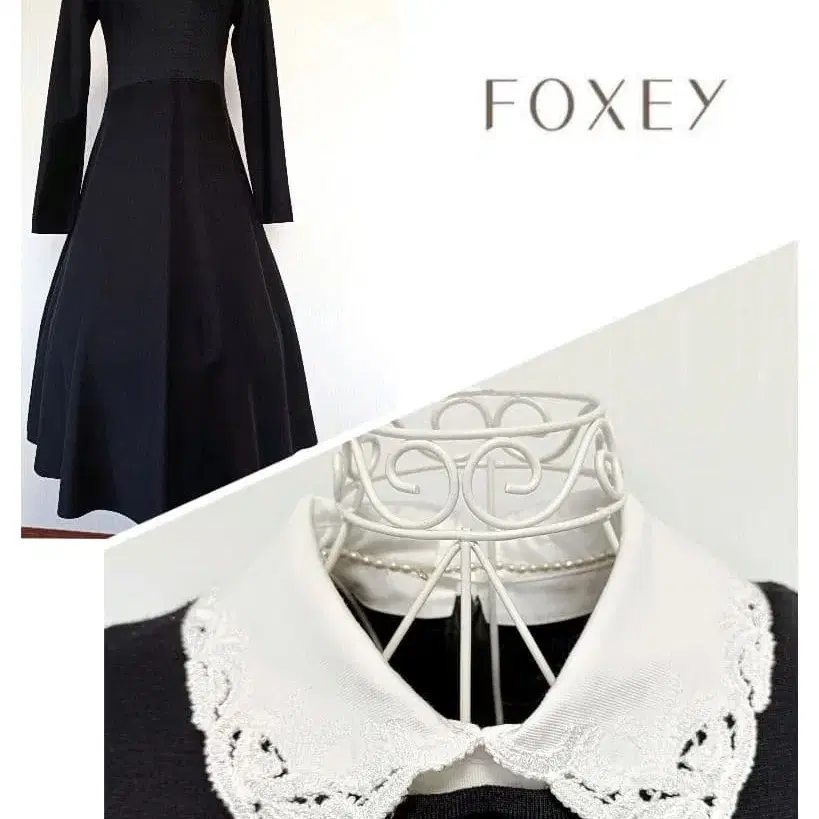 FOXEY 폭시 42312 긴팔 니트 화이트 카라 원피스 블랙 40