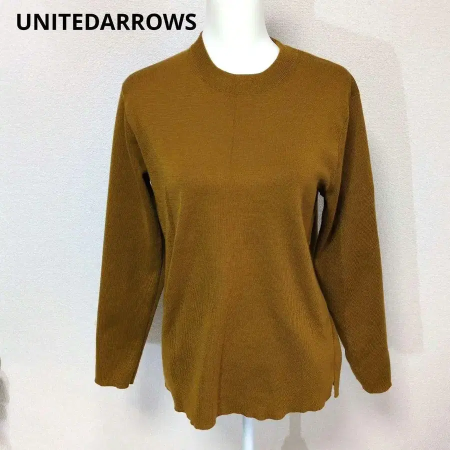 심플한 브라운 색상의 긴팔 니트 스웨터.