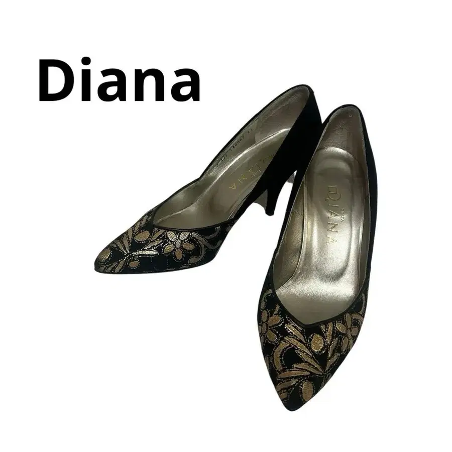 다이애나 DIANA 스웨이드 펌프스 골드 컬러 골드 자수 꽃무늬 22cm