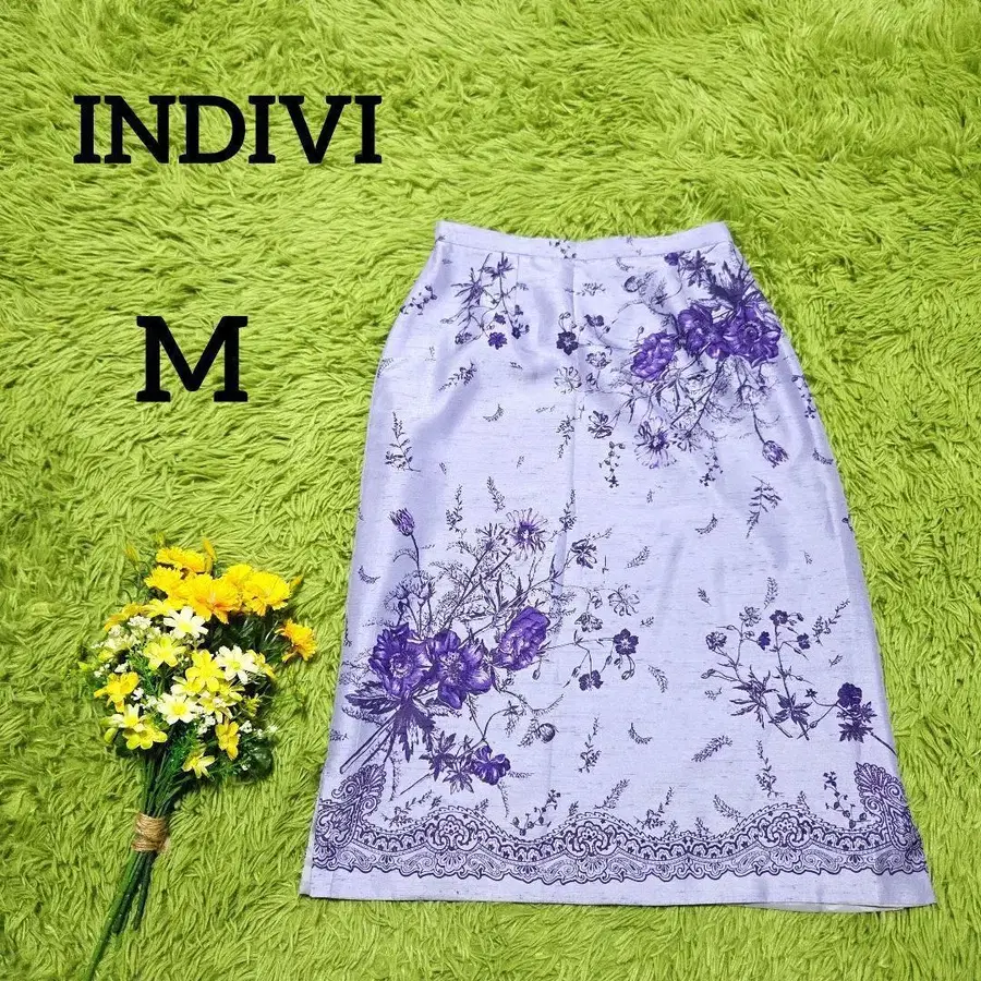 새상품급 [인디비] 꽃무늬 타이트 스커트 M 퍼플 고급 오피스 엘레강트