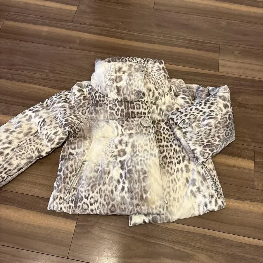 새상품급 MATERIA 다운 자켓 화이트 x 그레이 레오파드 38