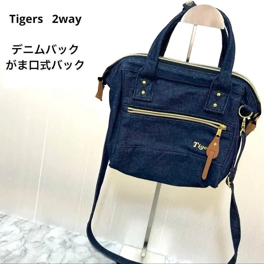 Tigers 데님 백 2way 핸드백 숄더백 가마구치 금 골드